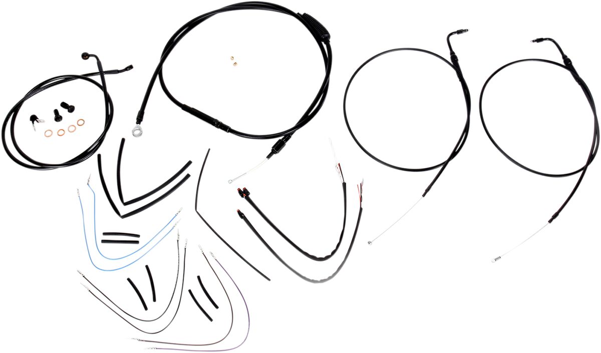 • Comprend une durite de frein simple disque en acier tressé noir rallongée, un câble d’embrayage rallongé, des câbles d’accélérateur rallongés et tout le câblage nécessaire.