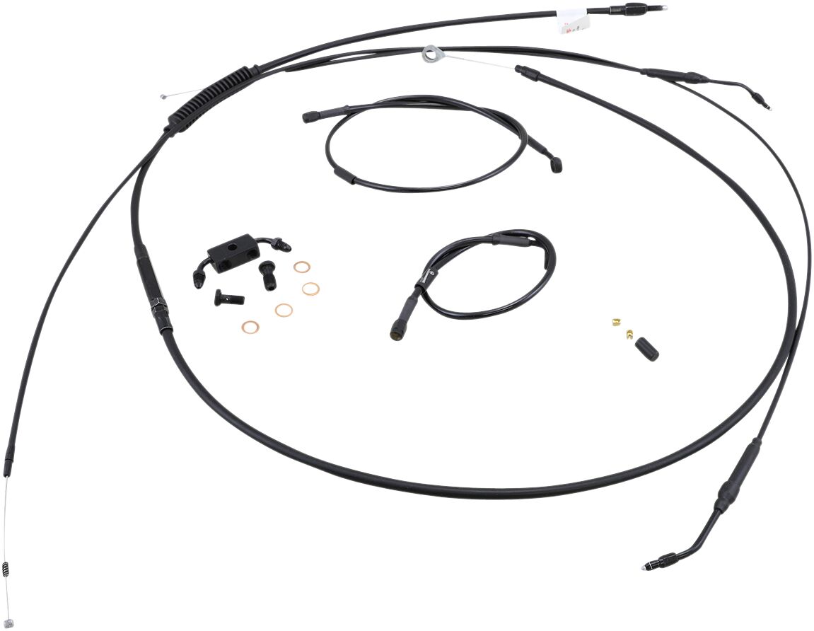 • Comprend une durite de frein en acier tressé noir simple disque rallongée, un câble d’embrayage rallongé, des câbles d’accélérateur rallongés et tout le câblage nécessaire.